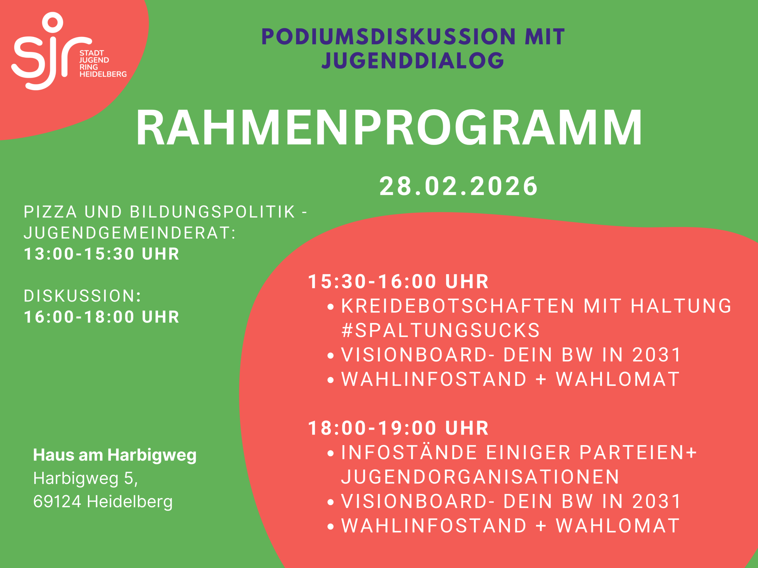 Hier könnt ihr die Jugendorganisationen der Parteien kennenlernen und weitere Fragen mit den Diskussionsgästen klären.
